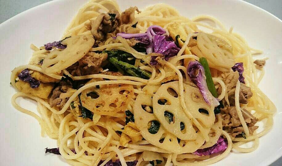 「蓮根と春菊のパスタ」レシピも紹介します。