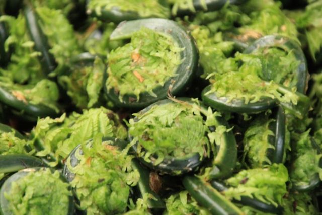 塩でもみ、切って熱湯をかけ、醤油漬けにすると、