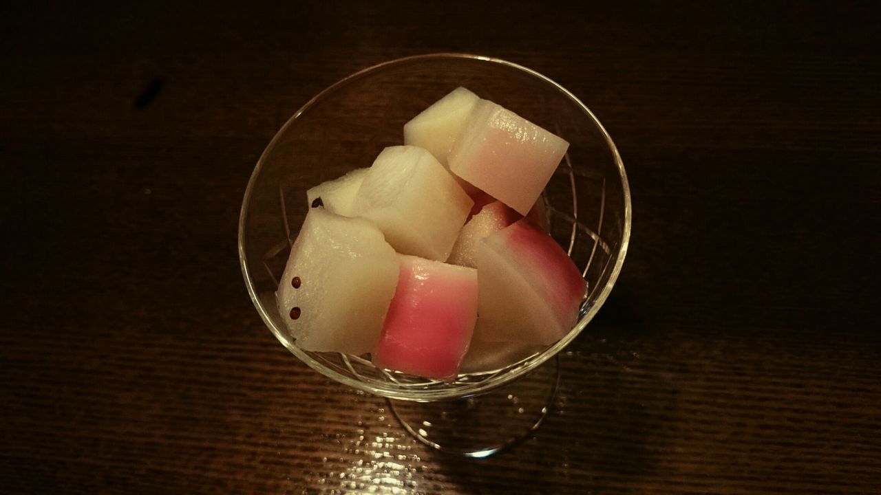 甘酢漬けにすると、全体がキレイなピンクに染まります。