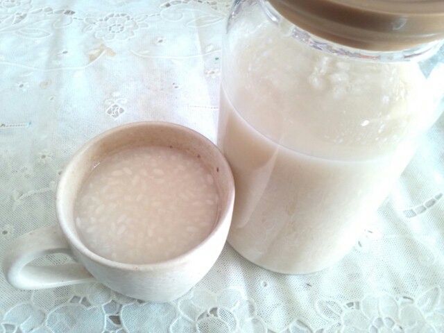 出来上がった甘酒は原液(甘麹)ですので、飲むときは