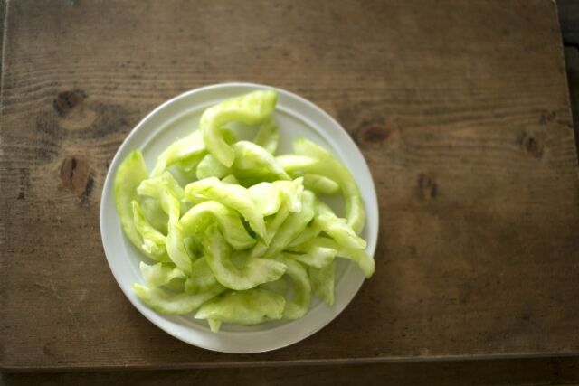 大きい白瓜なら、ピーラーで皮を薄くむき、