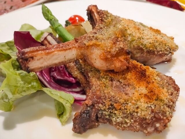 マリネしたラムチョップに薄力粉を薄くまぶし、